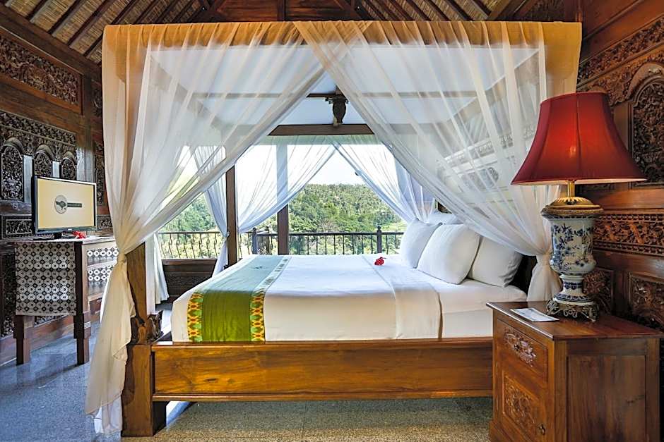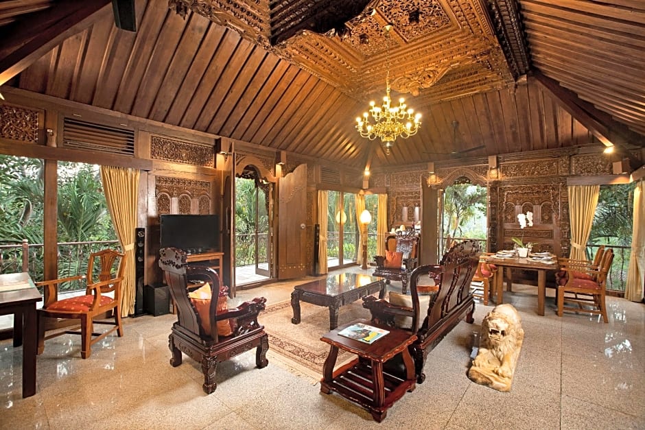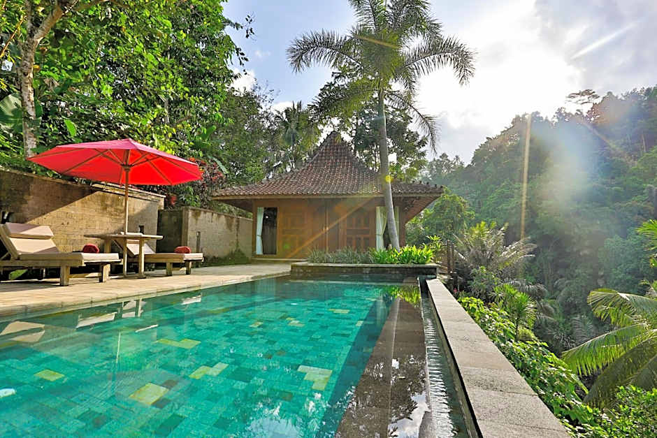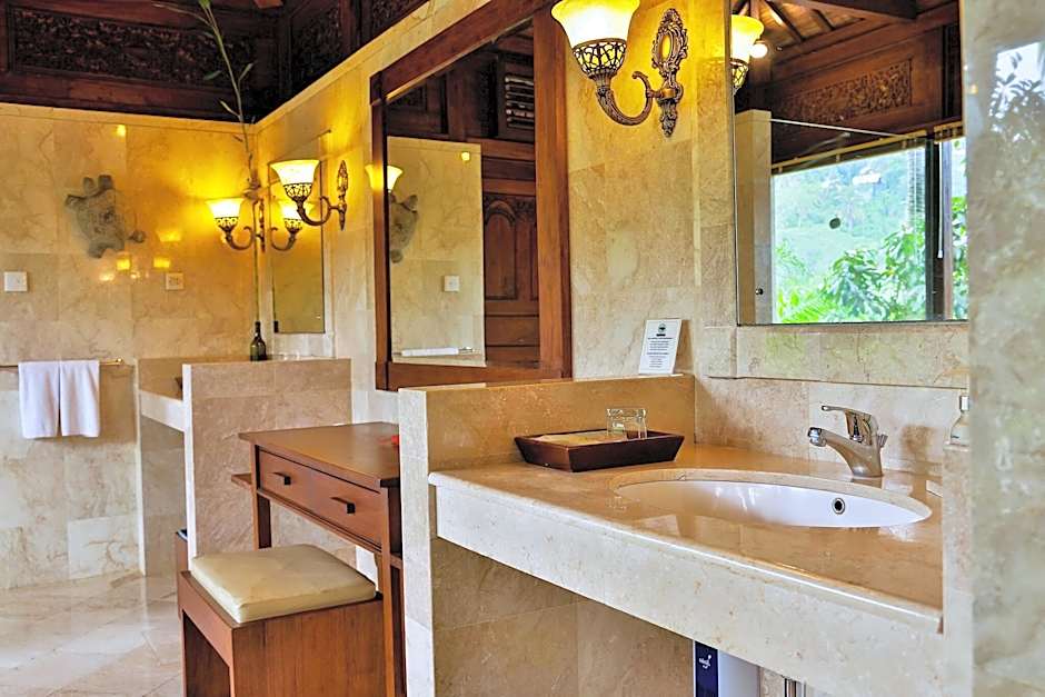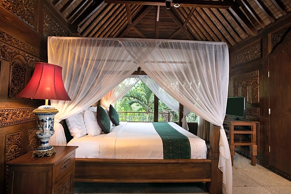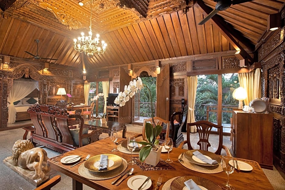 This 194-sqm one-bedroom villa is also called Rumah Kudus Suite Villa. It comes with a spacious and romantic bedroom equipped with a plush KingKoil bed with fine bedding, goose down pillows and a feather down comforter. Guests enjoy a private balcony, a private pool and a pool deck. Entertainment features including 42-inch flat screen Smart LCD home theater with international satellite channels, a DVD/CD sound system and free WiFi. Guests enjoy: - Daily breakfast at Wijaya Kusuma Restaurant - Shuttle service to Ubud center based on hotel schedule - Daily turn down service - Coffee & tea making facilities - Free village rice field trekking based on hotel schedule - Daily afternoon tea start from 16:00 to 18:00 - Free daily replenish mini-bar included 2 can of Beer - One time photo session with professional photographer and one digital edited photo (advance reservation required)